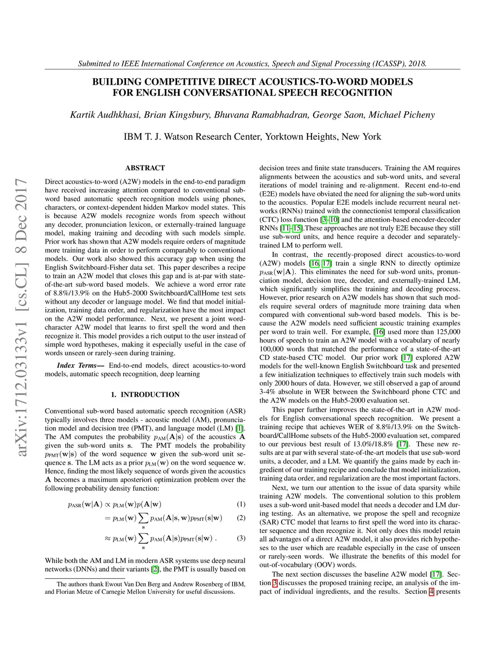 Direct acoustics-to-word (A2W) models in the end-to-end paradigm have received increasing attention compared to conventional sub-word based automatic speech recognition models using phones, characters, or context-dependent hidden Markov model states. This is because A2W models recognize words from speech without any decoder, pronunciation lexicon, or externally-trained language model, making training and decoding with such models simple. Prior work has shown that A2W models require orders of magnitude more training data in order to perform comparably to conventional models. Our work also showed this accuracy gap when using the English Switchboard-Fisher data set. This paper describes a recipe to train an A2W model that closes this gap and is at-par with state-of-the-art sub-word based models. We achieve a word error rate of 8.8%/13.9% on the Hub5-2000 Switchboard/CallHome test sets without any decoder or language model. We find that model initialization, training data order, and regularization have the most impact on the A2W model performance. Next, we present a joint word-character A2W model that learns to first spell the word and then recognize it. This model provides a rich output to the user instead of simple word hypotheses, making it especially useful in the case of words unseen or rarely-seen during training.