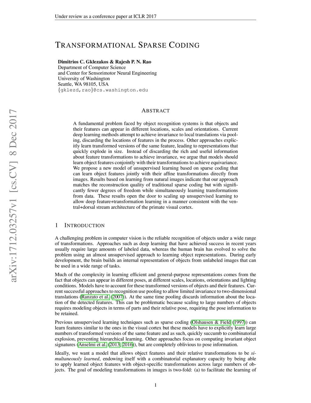 A fundamental problem faced by object recognition systems is that objects and their features can appear in different locations, scales and orientations. Current deep learning methods attempt to achieve invariance to local translations via pooling, discarding the locations of features in the process. Other approaches explicitly learn transformed versions of the same feature, leading to representations that quickly explode in size. Instead of discarding the rich and useful information about feature transformations to achieve invariance, we argue that models should learn object features conjointly with their transformations to achieve equivariance. We propose a new model of unsupervised learning based on sparse coding that can learn object features jointly with their affine transformations directly from images. Results based on learning from natural images indicate that our approach matches the reconstruction quality of traditional sparse coding but with significantly fewer degrees of freedom while simultaneously learning transformations from data. These results open the door to scaling up unsupervised learning to allow deep feature+transformation learning in a manner consistent with the ventral+dorsal stream architecture of the primate visual cortex.