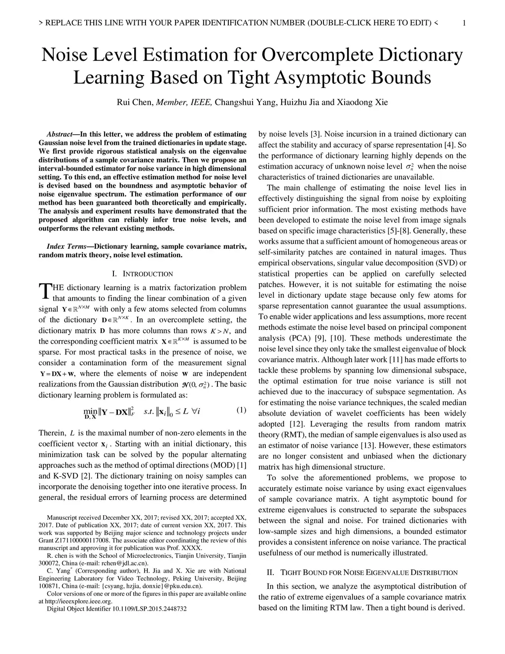 Noise Level Estimation for Overcomplete Dictionary Learning Based on