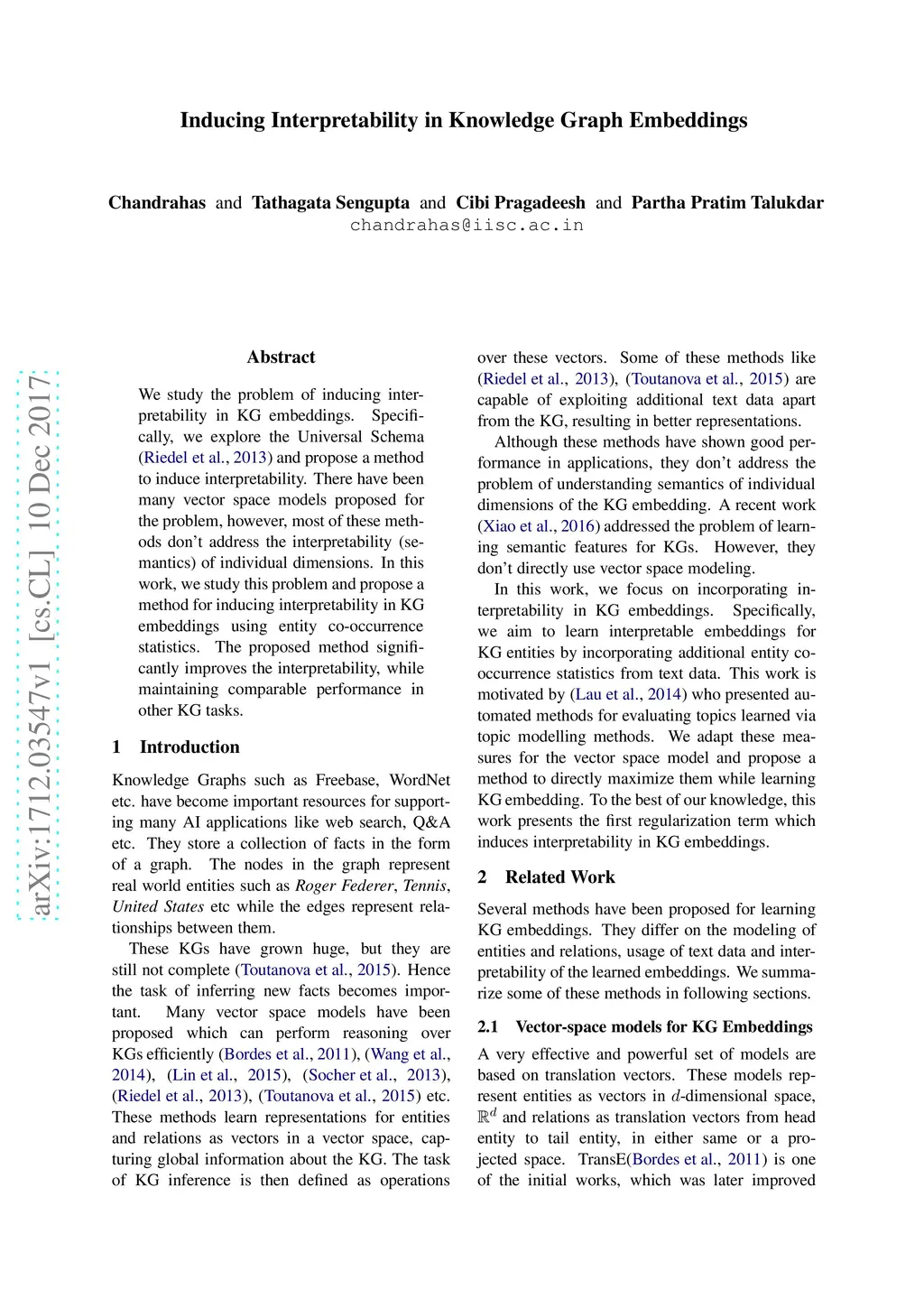 Inducing Interpretability in Knowledge Graph Embeddings