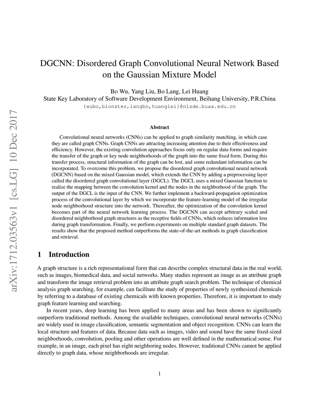 DGCNN: Disordered Graph Convolutional Neural Network Based on the