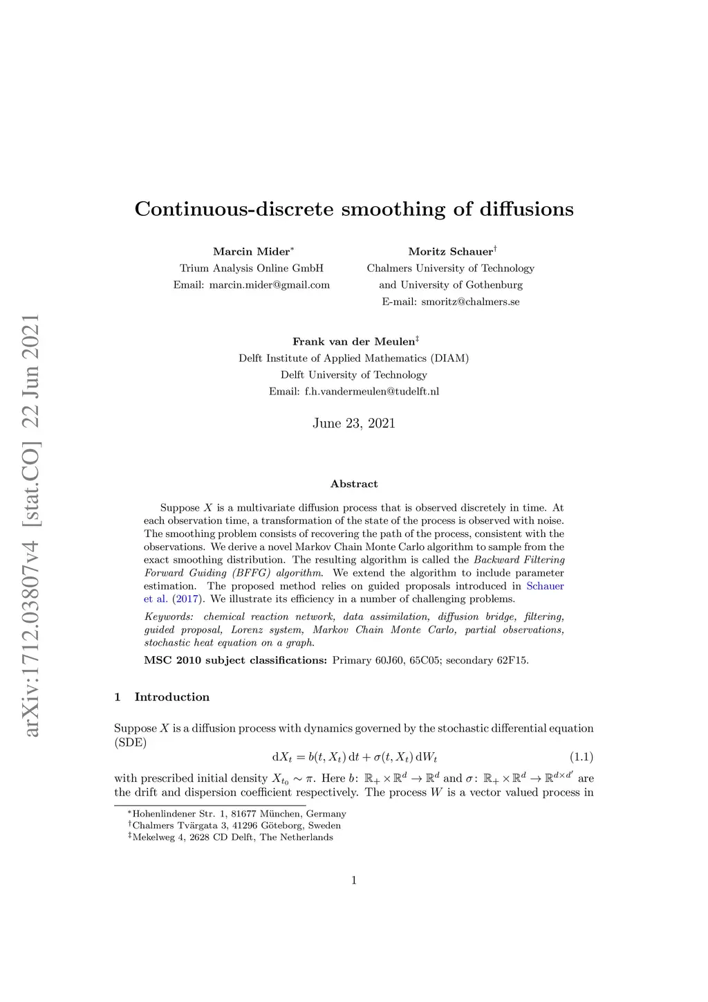 Suppose X is a multivariate diffusion process that is observed discretely in time. At each observation time, a linear transformation of the state of the process is observed with noise. The smoothing problem consists of recovering the path of the process, consistent with the observations. We derive a novel Markov Chain Monte Carlo algorithm to sample from the exact smoothing distribution. The resulting algorithm is called the Backward Filtering Forward Guiding (BFFG) algorithm. We extend the algorithm to include parameter estimation. The proposed method relies on guided proposals introduced in Schauer et al. (2017). We illustrate its efficiency in a number of challenging problems.