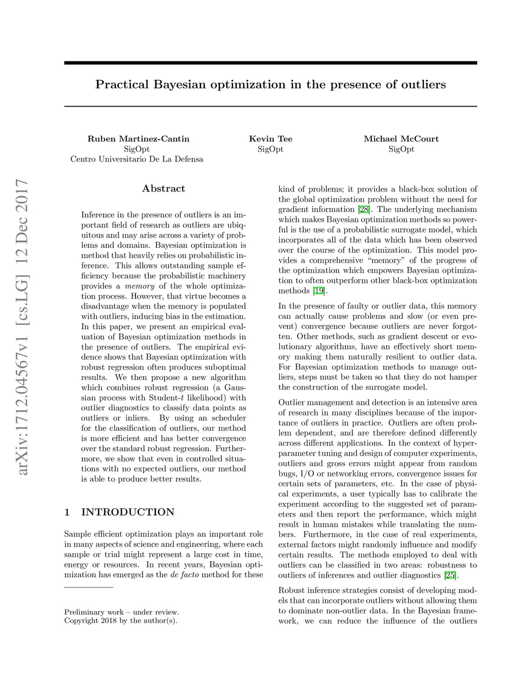 Inference in the presence of outliers is an important field of research as outliers are ubiquitous and may arise across a variety of problems and domains. Bayesian optimization is method that heavily relies on probabilistic inference. This allows outstanding sample efficiency because the probabilistic machinery provides a memory of the whole optimization process. However, that virtue becomes a disadvantage when the memory is populated with outliers, inducing bias in the estimation. In this paper, we present an empirical evaluation of Bayesian optimization methods in the presence of outliers. The empirical evidence shows that Bayesian optimization with robust regression often produces suboptimal results. We then propose a new algorithm which combines robust regression (a Gaussian process with Student-t likelihood) with outlier diagnostics to classify data points as outliers or inliers. By using an scheduler for the classification of outliers, our method is more efficient and has better convergence over the standard robust regression. Furthermore, we show that even in controlled situations with no expected outliers, our method is able to produce better results.