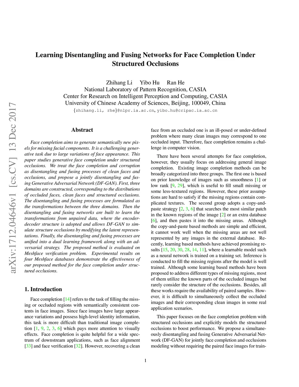 Learning Disentangling and Fusing Networks for Face Completion Under