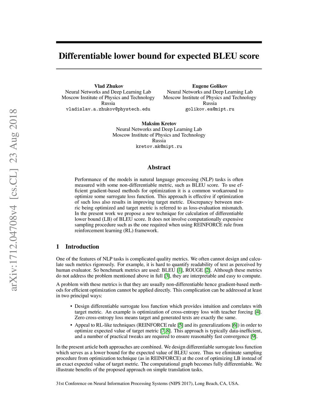 Differentiable lower bound for expected BLEU score