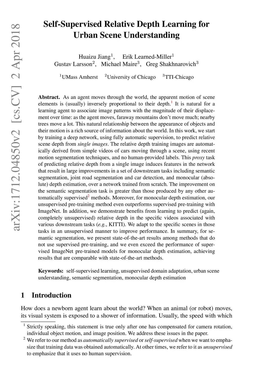 Self-Supervised Relative Depth Learning for Urban Scene Understanding