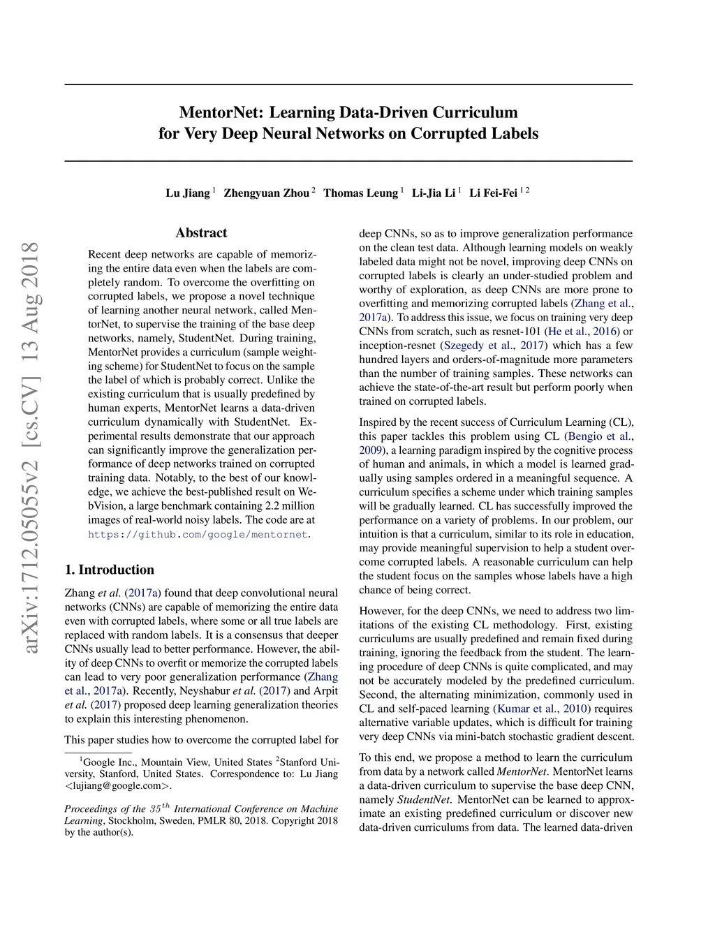 MentorNet: Learning Data-Driven Curriculum for Very Deep Neural Networks