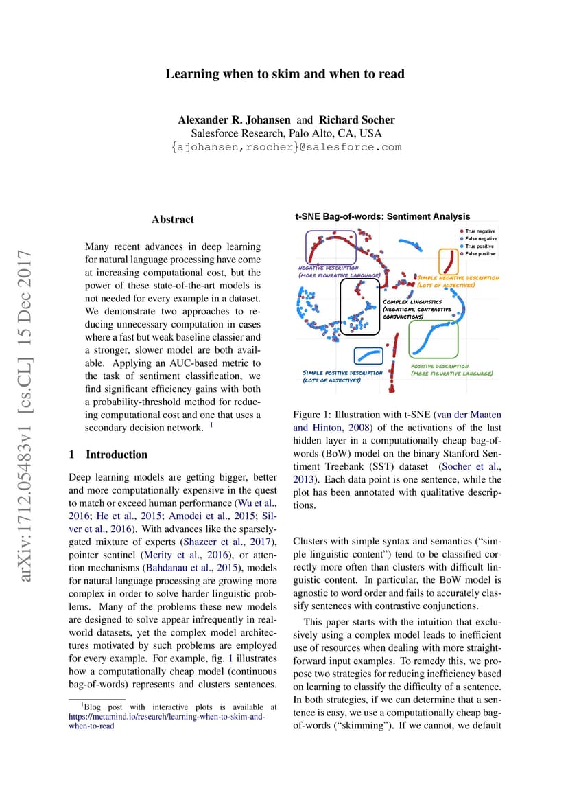 Many recent advances in deep learning for natural language processing have come at increasing computational cost, but the power of these state-of-the-art models is not needed for every example in a dataset. We demonstrate two approaches to reducing unnecessary computation in cases where a fast but weak baseline classier and a stronger, slower model are both available. Applying an AUC-based metric to the task of sentiment classification, we find significant efficiency gains with both a probability-threshold method for reducing computational cost and one that uses a secondary decision network.