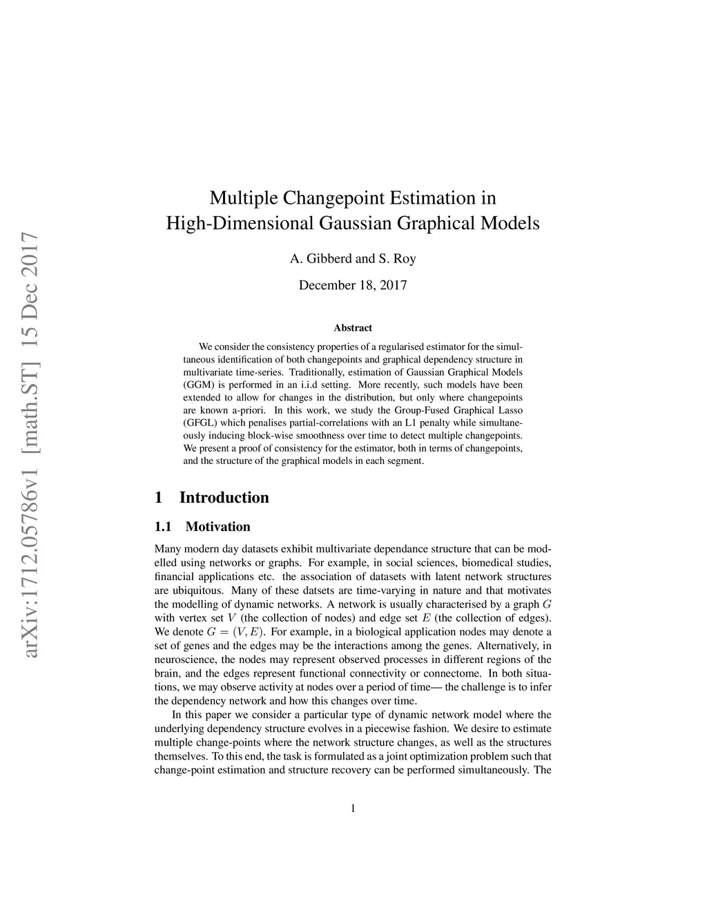 We consider the consistency properties of a regularised estimator for the simultaneous identification of both changepoints and graphical dependency structure in multivariate time-series. Traditionally, estimation of Gaussian Graphical Models (GGM) is performed in an i.i.d setting. More recently, such models have been extended to allow for changes in the distribution, but only where changepoints are known a-priori. In this work, we study the Group-Fused Graphical Lasso (GFGL) which penalises partial-correlations with an L1 penalty while simultaneously inducing block-wise smoothness over time to detect multiple changepoints. We present a proof of consistency for the estimator, both in terms of changepoints, and the structure of the graphical models in each segment.