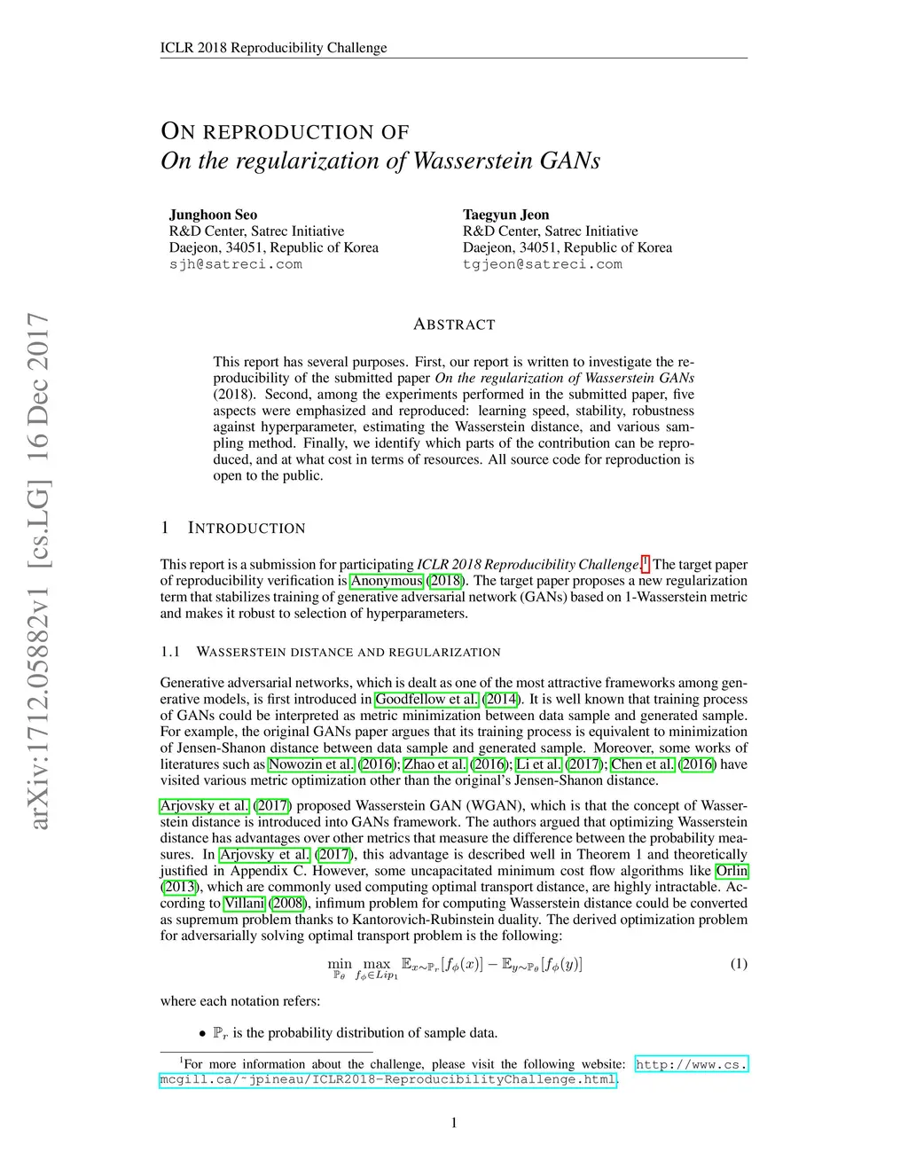 This report has several purposes. First, our report is written to investigate the reproducibility of the submitted paper On the regularization of Wasserstein GANs (2018). Second, among the experiments performed in the submitted paper, five aspects were emphasized and reproduced: learning speed, stability, robustness against hyperparameter, estimating the Wasserstein distance, and various sampling method. Finally, we identify which parts of the contribution can be reproduced, and at what cost in terms of resources. All source code for reproduction is open to the public.