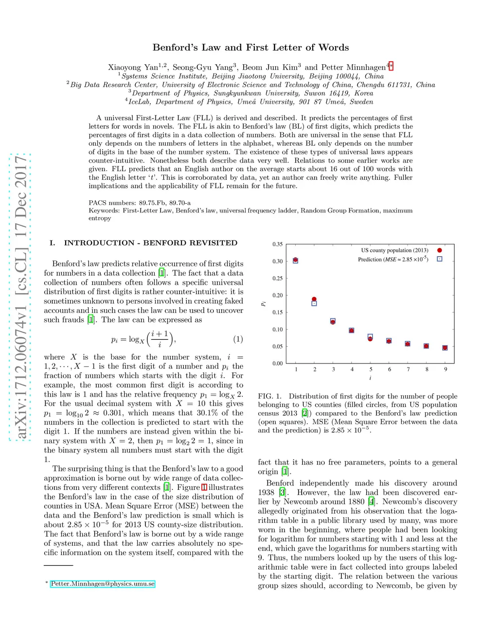 Benford's Law and First Letter of Word