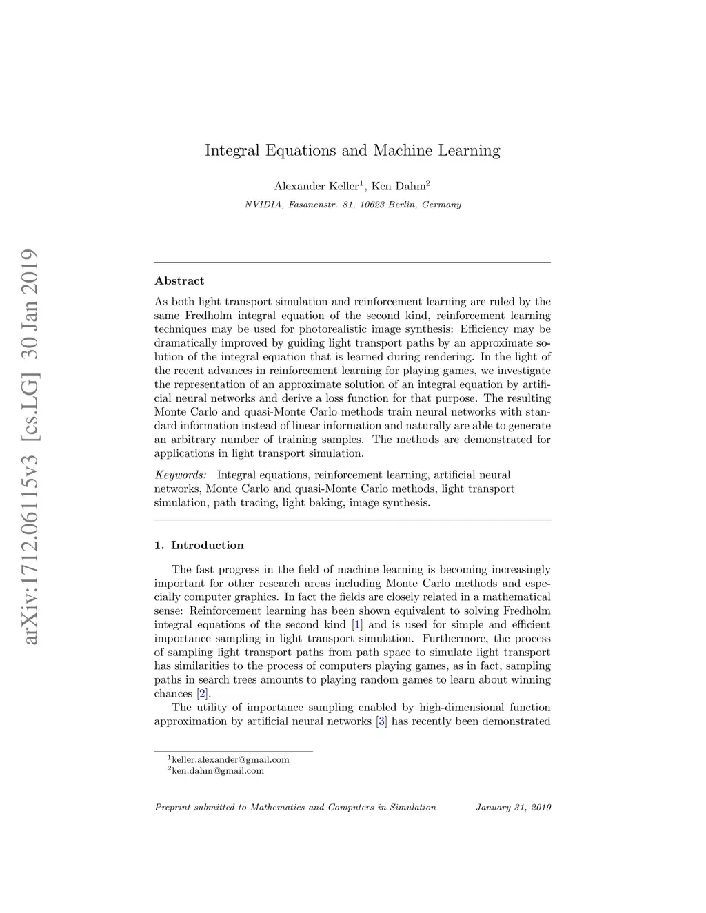As both light transport simulation and reinforcement learning are ruled by the same Fredholm integral equation of the second kind, reinforcement learning techniques may be used for photorealistic image synthesis: Efficiency may be dramatically improved by guiding light transport paths by an approximate solution of the integral equation that is learned during rendering. In the light of the recent advances in reinforcement learning for playing games, we investigate the representation of an approximate solution of an integral equation by artificial neural networks and derive a loss function for that purpose. The resulting Monte Carlo and quasi-Monte Carlo methods train neural networks with standard information instead of linear information and naturally are able to generate an arbitrary number of training samples. The methods are demonstrated for applications in light transport simulation.