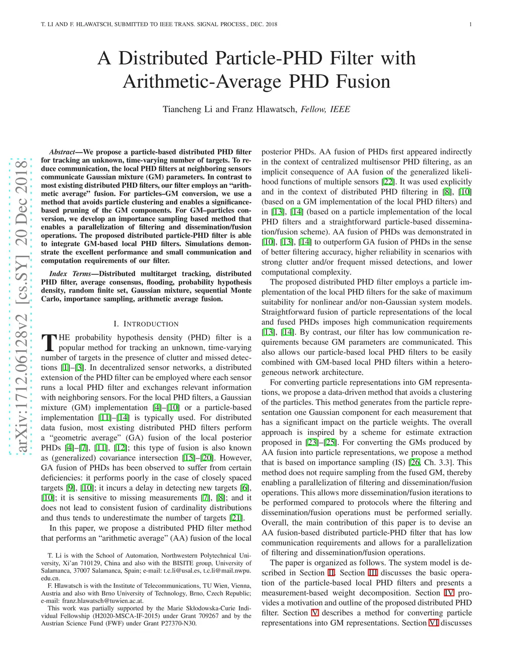 A Distributed Particle-PHD Filter with Arithmetic-Average PHD Fusion