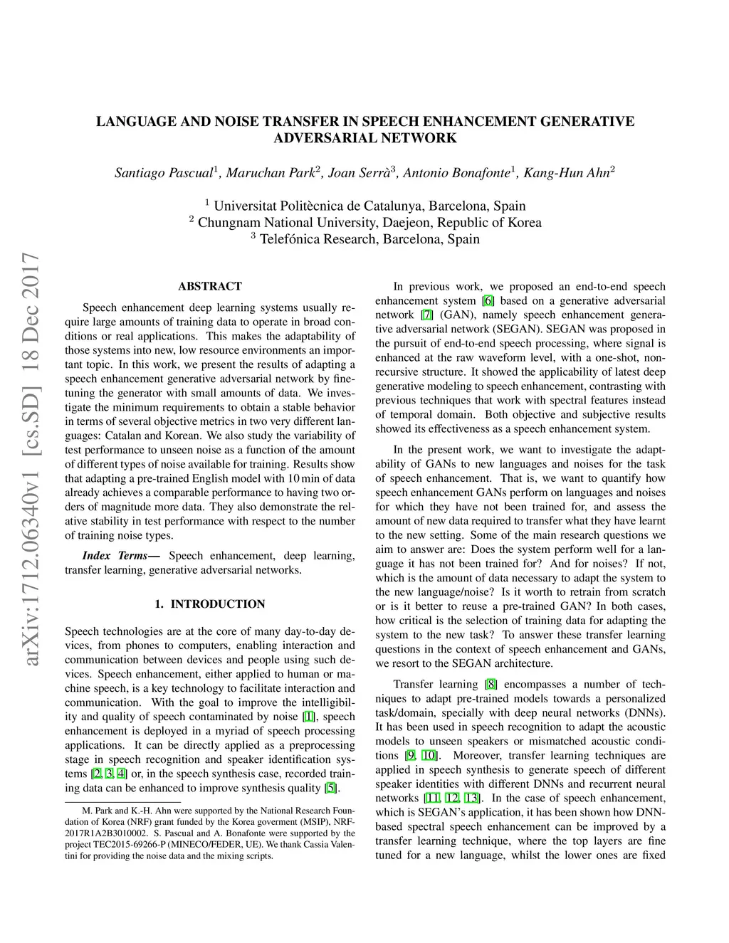 Language and Noise Transfer in Speech Enhancement Generative Adversarial