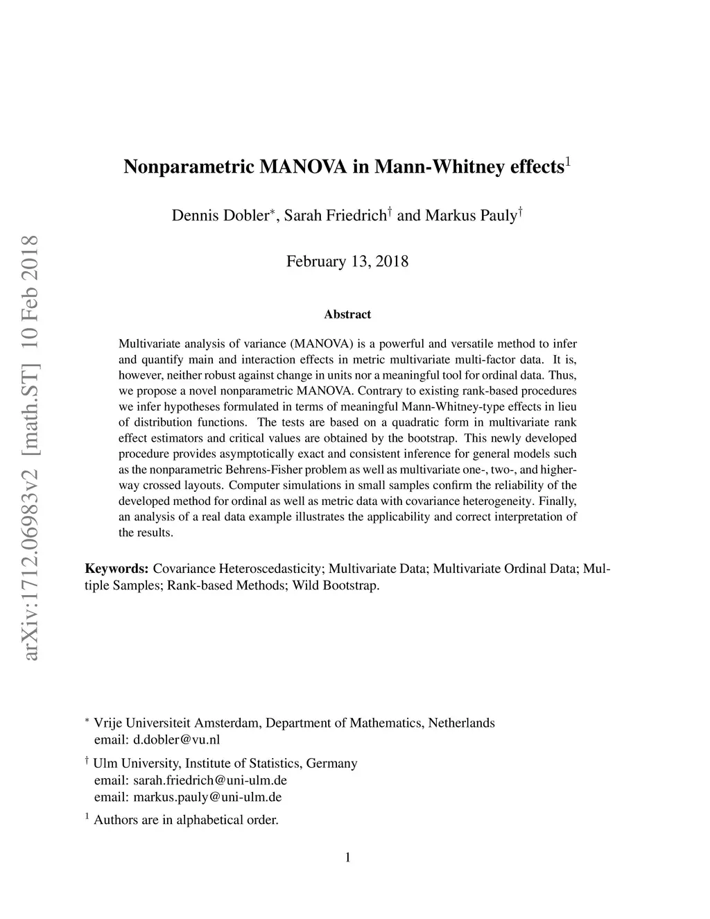 Multivariate analysis of variance (MANOVA) is a powerful and versatile method to infer and quantify main and interaction effects in metric multivariate multi-factor data. It is, however, neither robust against change in units nor a meaningful tool for ordinal data. Thus, we propose a novel nonparametric MANOVA. Contrary to existing rank-based procedures we infer hypotheses formulated in terms of meaningful Mann-Whitney-type effects in lieu of distribution functions. The tests are based on a quadratic form in multivariate rank effect estimators and critical values are obtained by the bootstrap. This newly developed procedure consequently provides asymptotically exact and consistent inference for general models such as the nonparametric Behrens-Fisher problem as well as multivariate one-, two-, and higher-way crossed layouts. Computer simulations in small samples confirm the reliability of the developed method for ordinal as well as metric data with covariance heterogeneity. Finally, an analysis of a real data example illustrates the applicability and correct interpretation of the results.