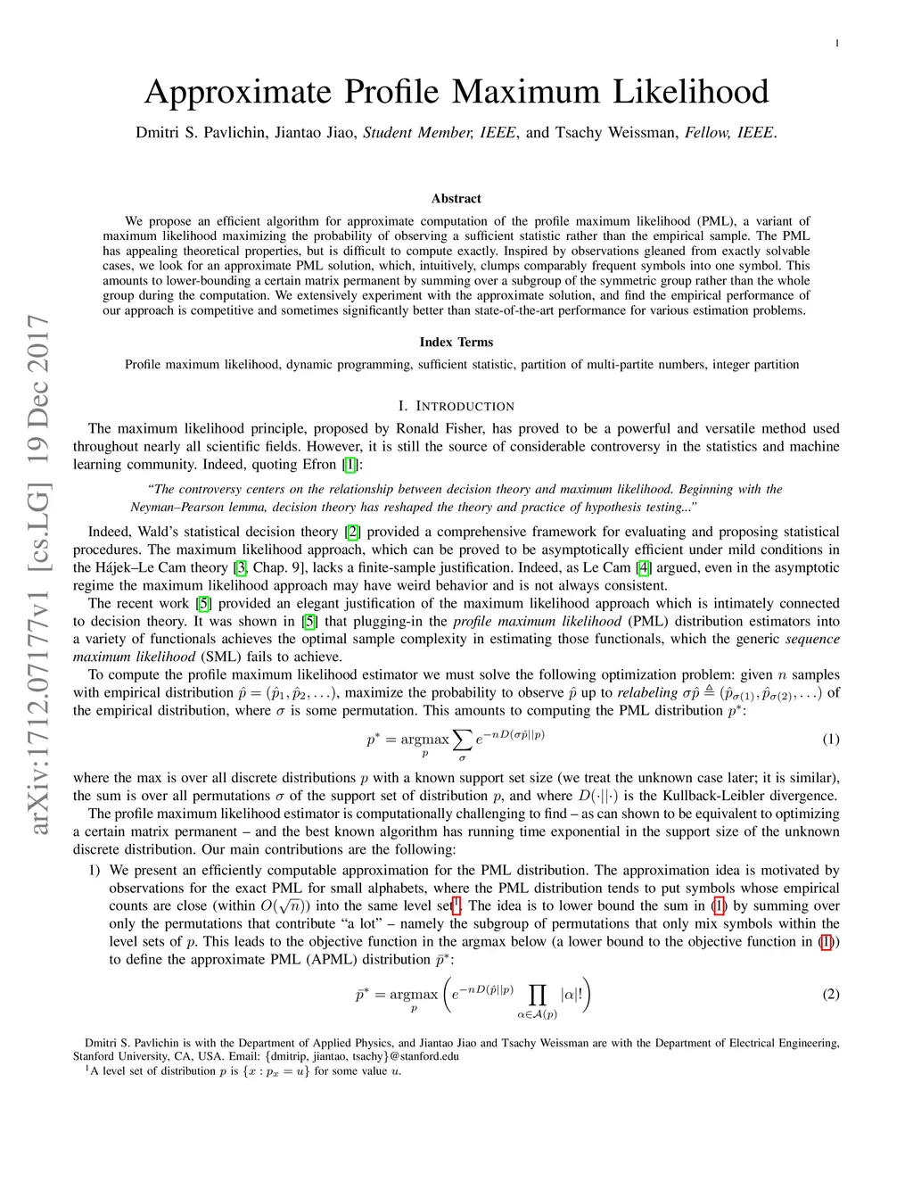 We propose an efficient algorithm for approximate computation of the profile maximum likelihood (PML), a variant of maximum likelihood maximizing the probability of observing a sufficient statistic rather than the empirical sample. The PML has appealing theoretical properties, but is difficult to compute exactly. Inspired by observations gleaned from exactly solvable cases, we look for an approximate PML solution, which, intuitively, clumps comparably frequent symbols into one symbol. This amounts to lower-bounding a certain matrix permanent by summing over a subgroup of the symmetric group rather than the whole group during the computation. We extensively experiment with the approximate solution, and find the empirical performance of our approach is competitive and sometimes significantly better than state-of-the-art performance for various estimation problems.