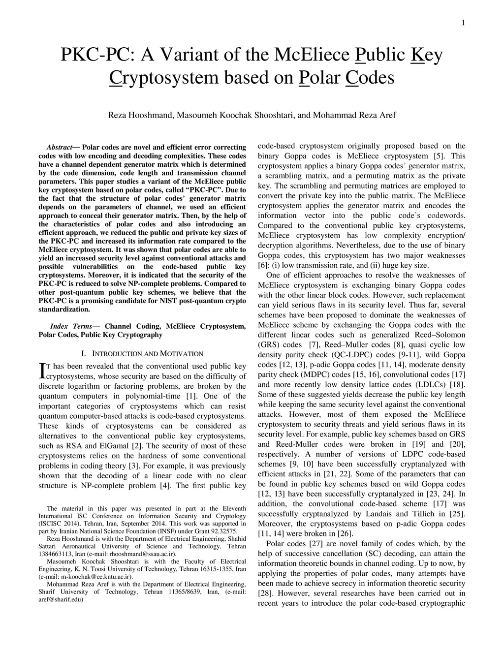 PKC-PC: A Variant of the McEliece Public Key Cryptosystem based on Polar