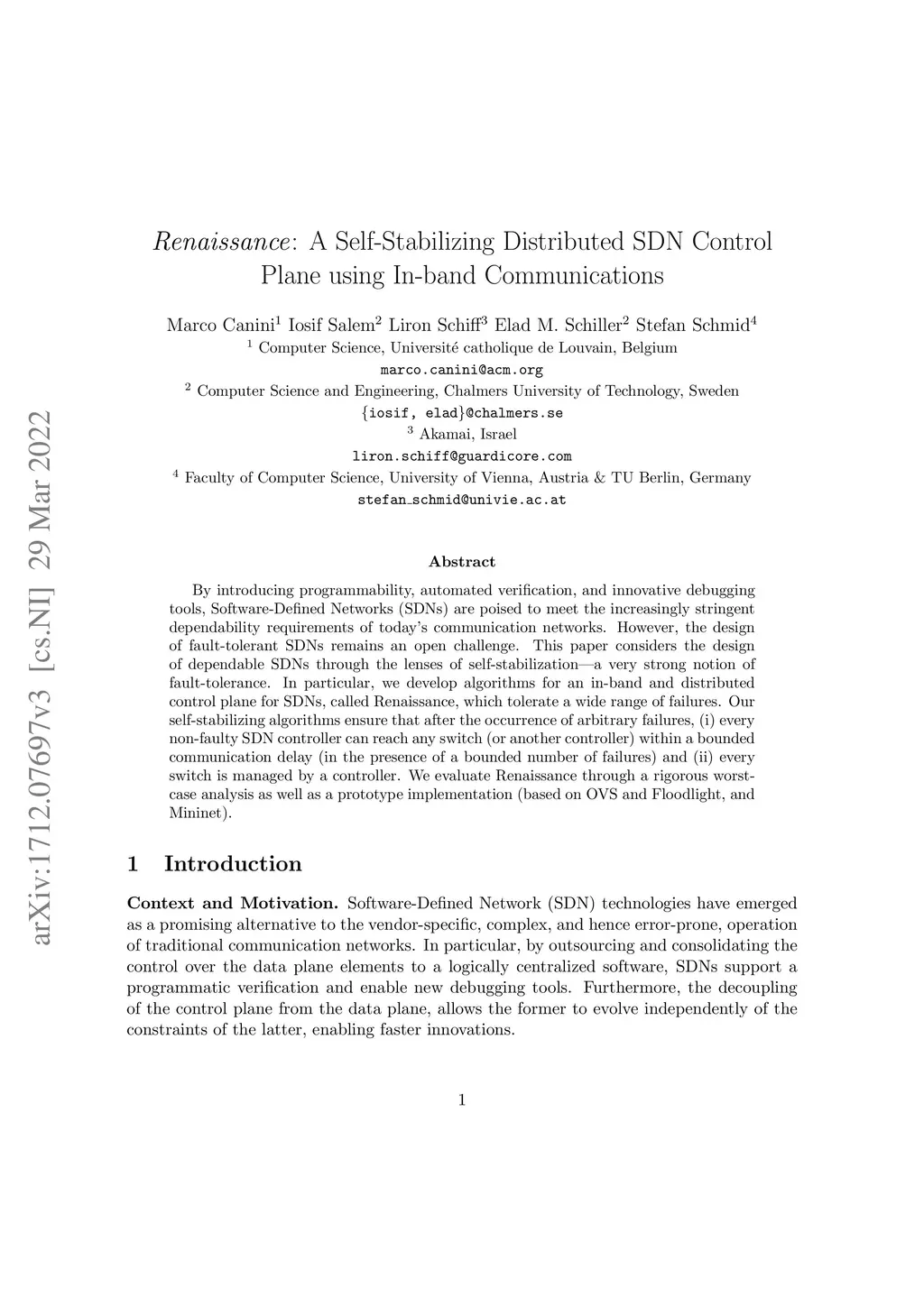 Renaissance: A Self-Stabilizing Distributed SDN Control Plane using