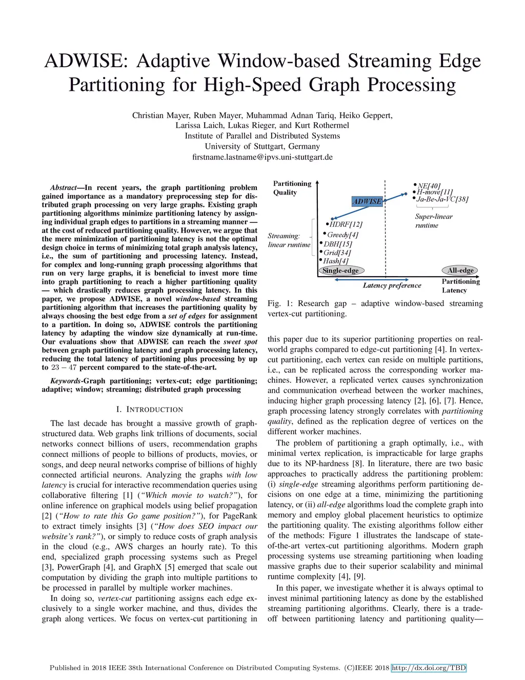 ADWISE: Adaptive Window-based Streaming Edge Partitioning for High-Speed