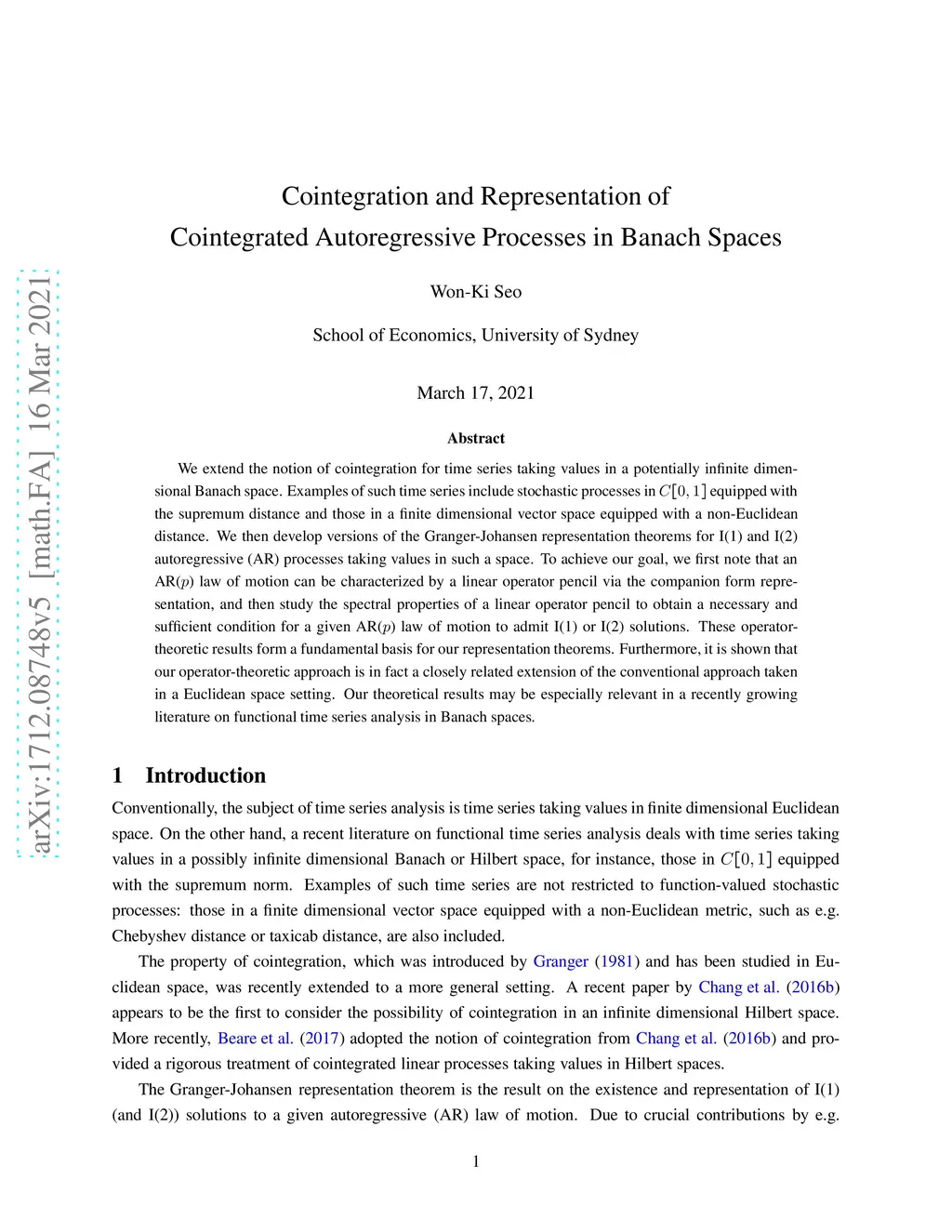 We extend the notion of cointegration for time series taking values in a potentially infinite dimensional Banach space. Examples of such time series include stochastic processes in C[0,1] equipped with the supremum distance and those in a finite dimensional vector space equipped with a non-Euclidean distance. We then develop versions of the Granger-Johansen representation theorems for I(1) and I(2) autoregressive (AR) processes taking values in such a space. To achieve our goal, we first note that an AR(p) law of motion can be characterized by a linear operator pencil via the companion form representation, and then study the spectral properties of a linear operator pencil to obtain a necessary and sufficient condition for a given AR(p) law of motion to admit I(1) or I(2) solutions. These operator-theoretic results form a fundamental basis for our representation theorems. Furthermore, it is shown that our operator-theoretic approach is in fact a closely related extension of the conventional approach taken in a Euclidean space setting. Our theoretical results may be especially relevant in a recently growing literature on functional time series analysis in Banach spaces.