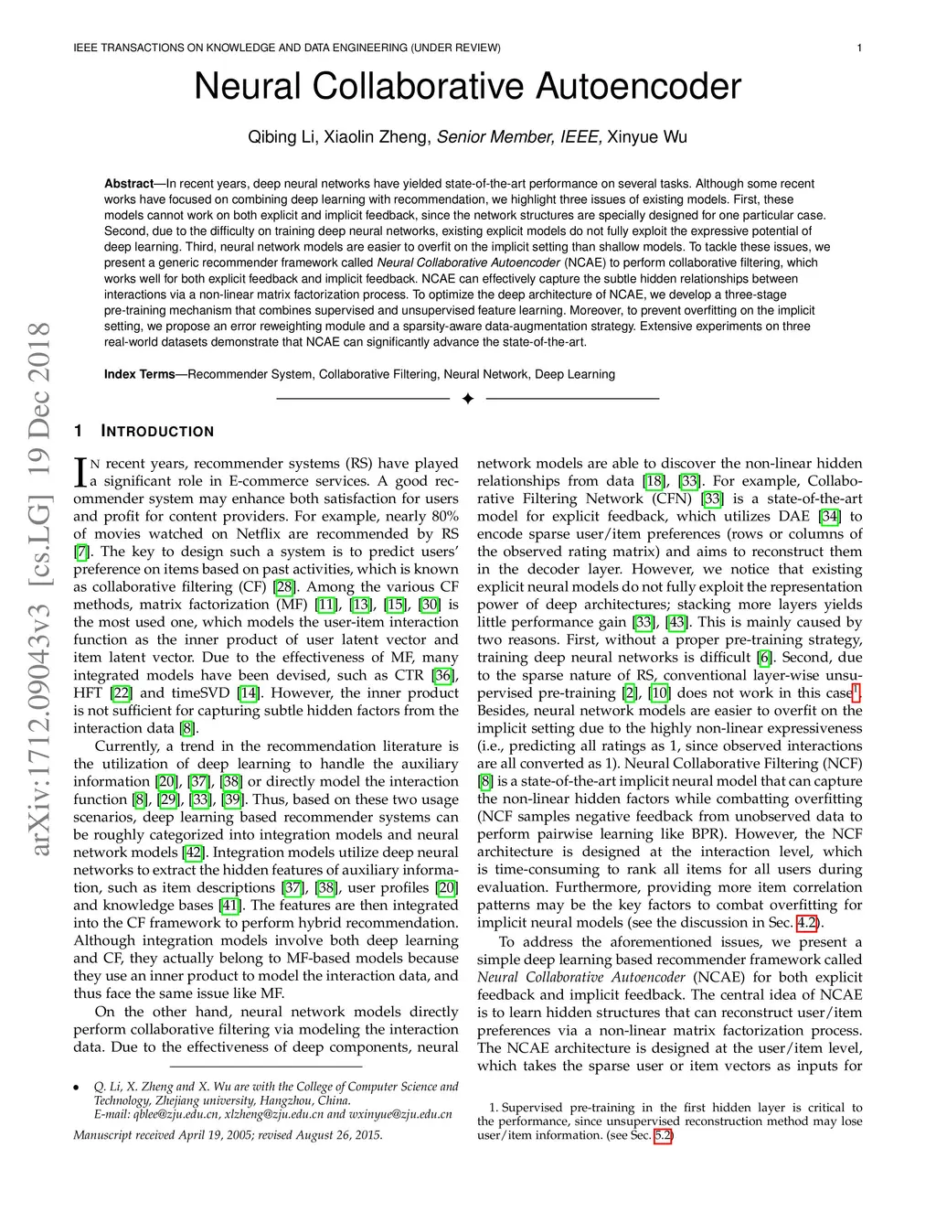 Neural Collaborative Autoencoder