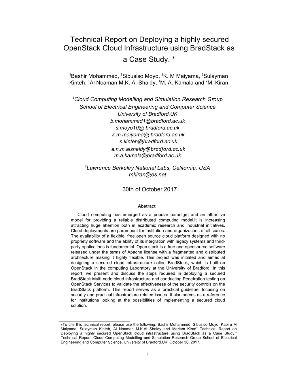 Technical Report on Deploying a highly secured OpenStack Cloud