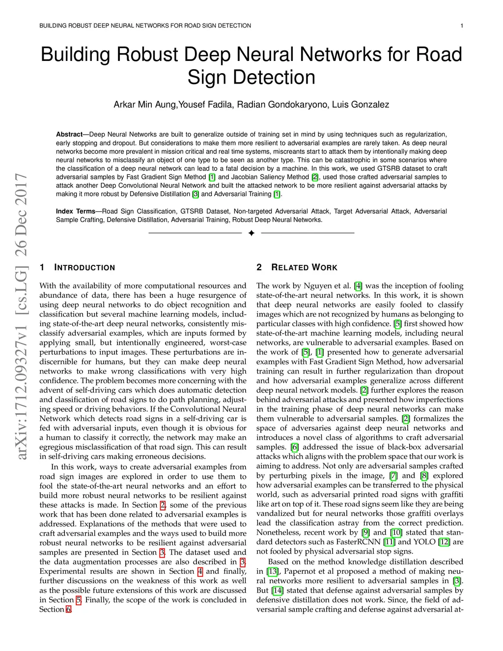 Deep Neural Networks are built to generalize outside of training set in mind by using techniques such as regularization, early stopping and dropout. But considerations to make them more resilient to adversarial examples are rarely taken. As deep neural networks become more prevalent in mission-critical and real-time systems, miscreants start to attack them by intentionally making deep neural networks to misclassify an object of one type to be seen as another type. This can be catastrophic in some scenarios where the classification of a deep neural network can lead to a fatal decision by a machine. In this work, we used GTSRB dataset to craft adversarial samples by Fast Gradient Sign Method and Jacobian Saliency Method, used those crafted adversarial samples to attack another Deep Convolutional Neural Network and built the attacked network to be more resilient against adversarial attacks by making it more robust by Defensive Distillation and Adversarial Training