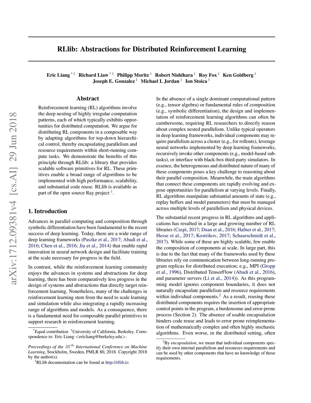 RLlib: Abstractions for Distributed Reinforcement Learning