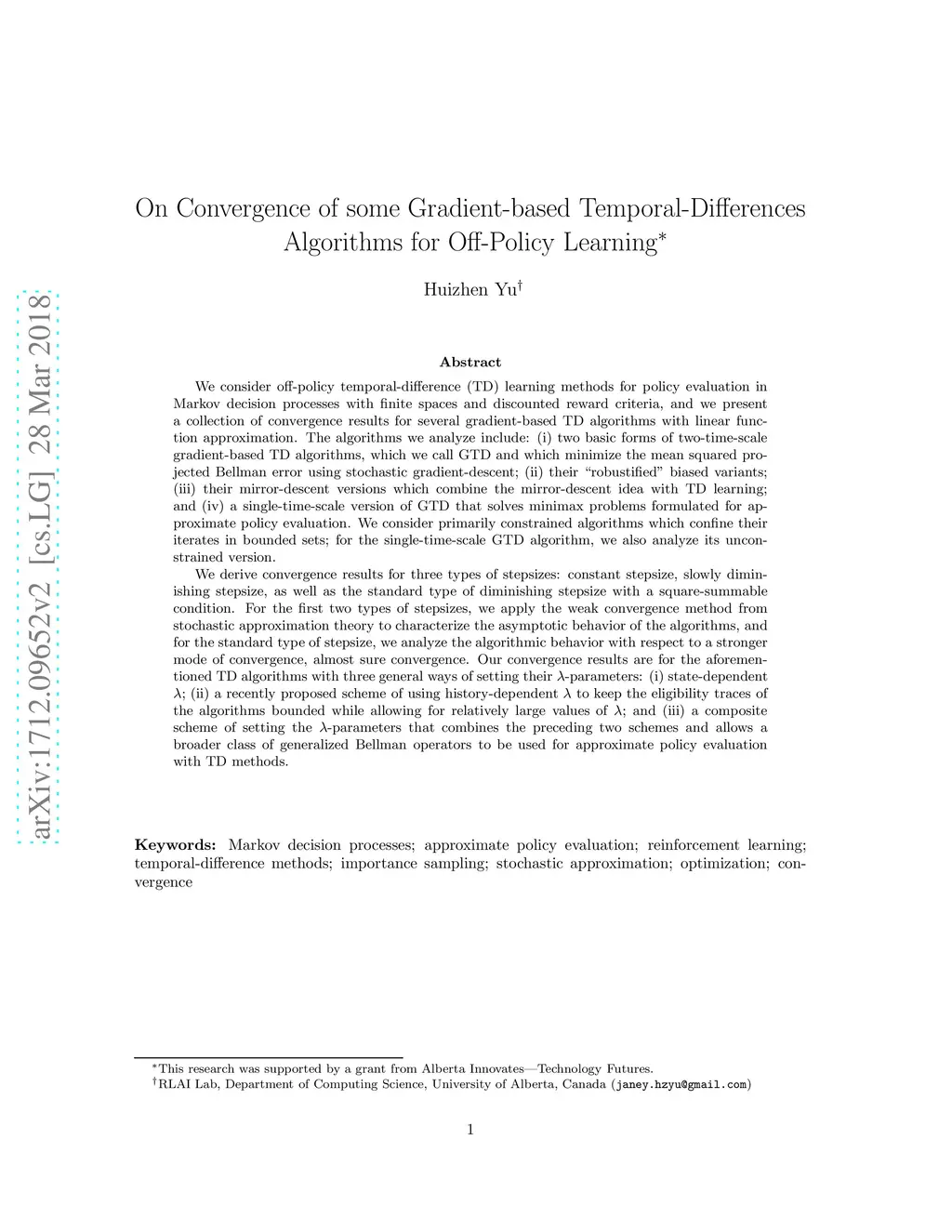 On Convergence of some Gradient-based Temporal-Differences Algorithms