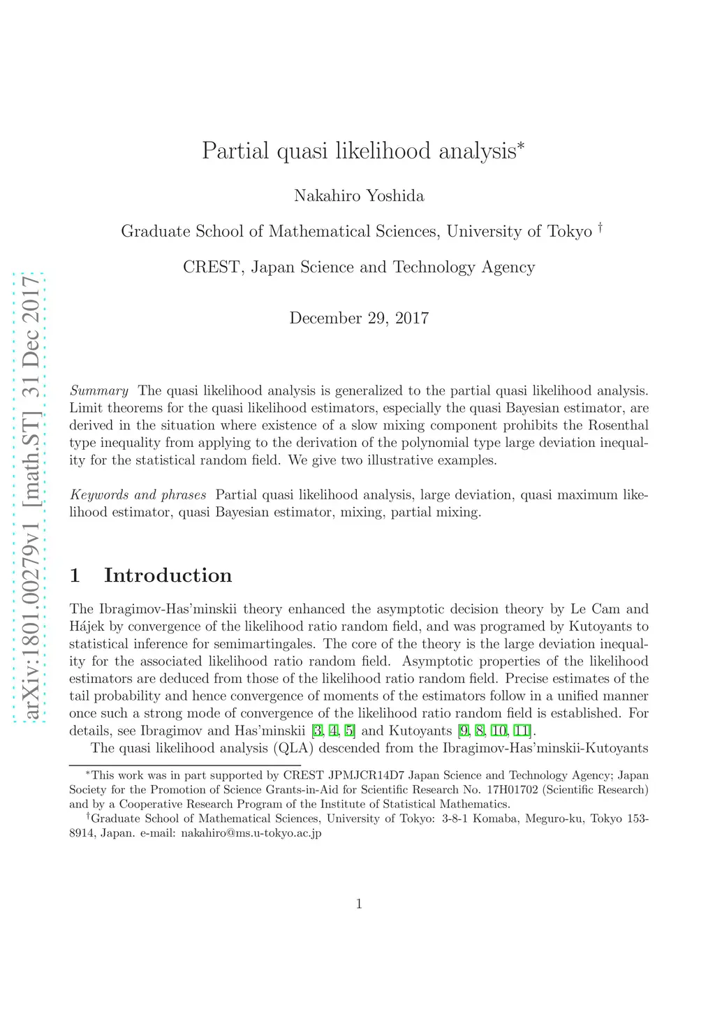 Partial quasi likelihood analysis
