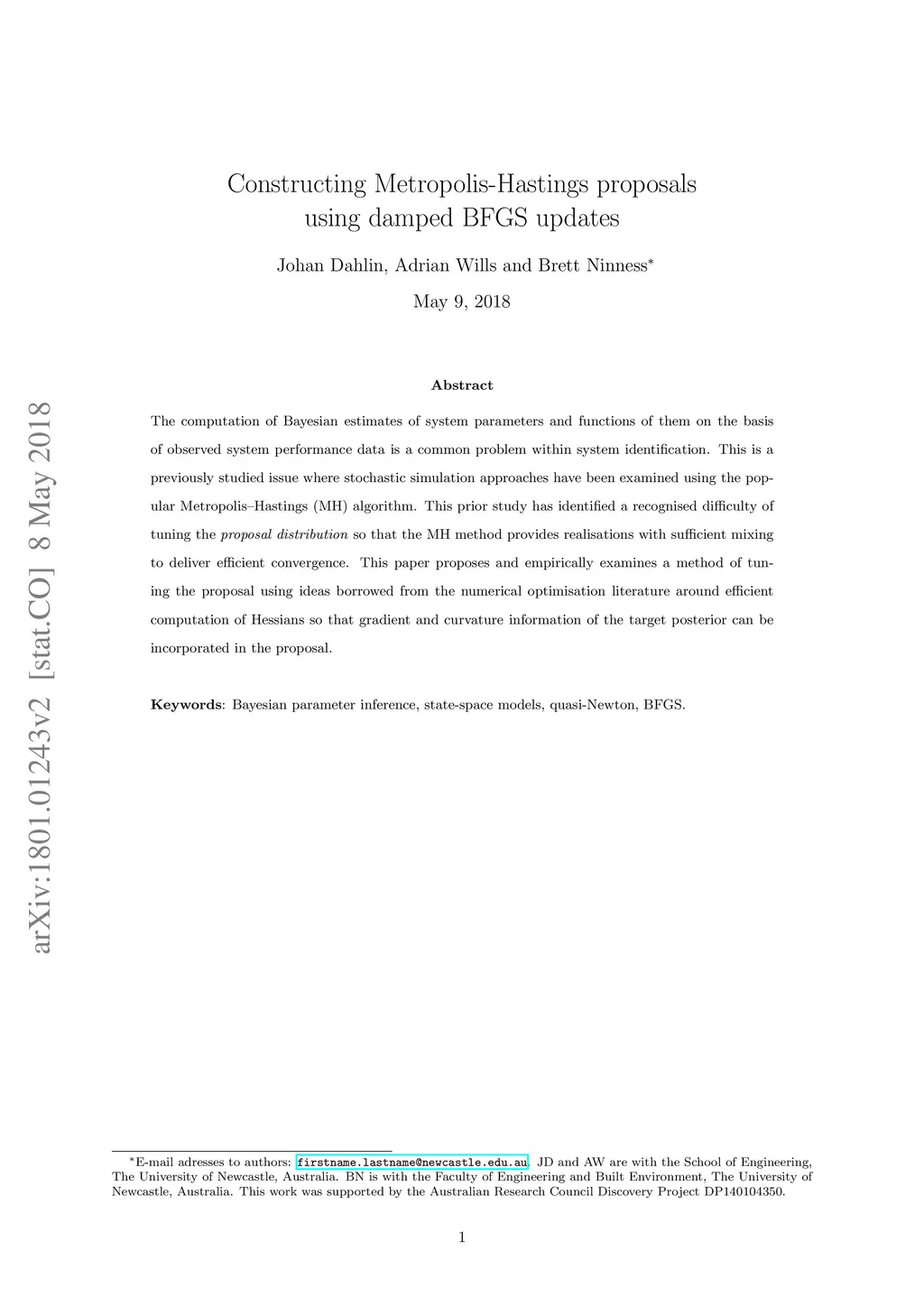 Constructing Metropolis-Hastings proposals using damped BFGS updates