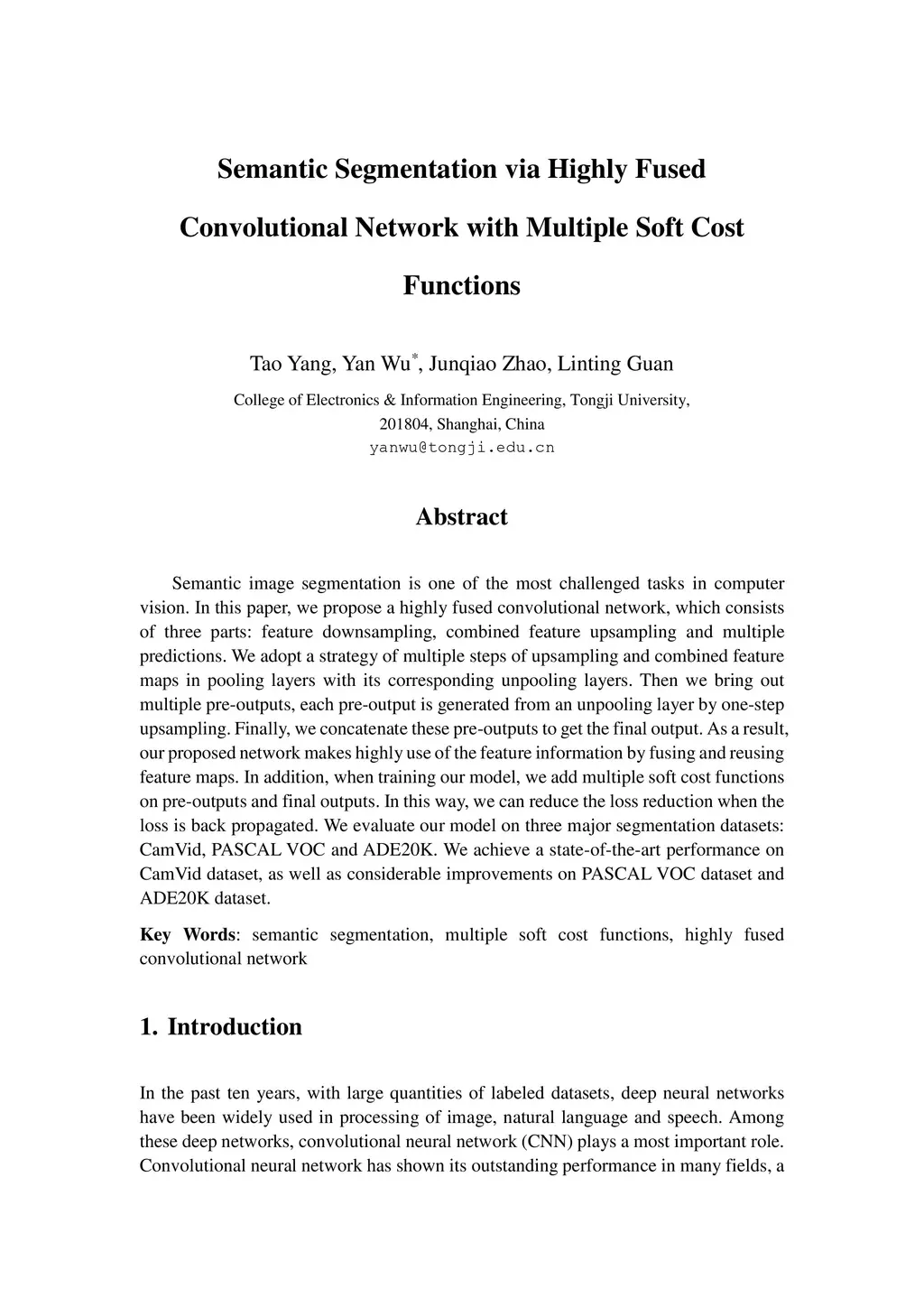 Semantic Segmentation via Highly Fused Convolutional Network with