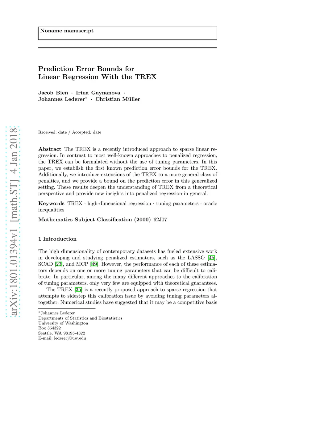 Prediction Error Bounds for Linear Regression With the TREX