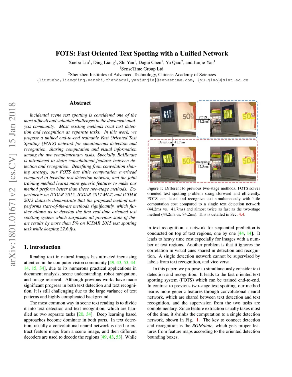 FOTS: Fast Oriented Text Spotting with a Unified Network