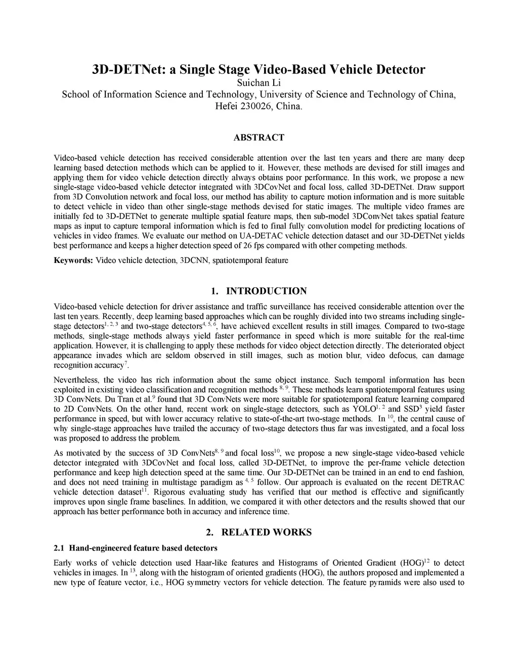 3D-DETNet: a Single Stage Video-Based Vehicle Detector