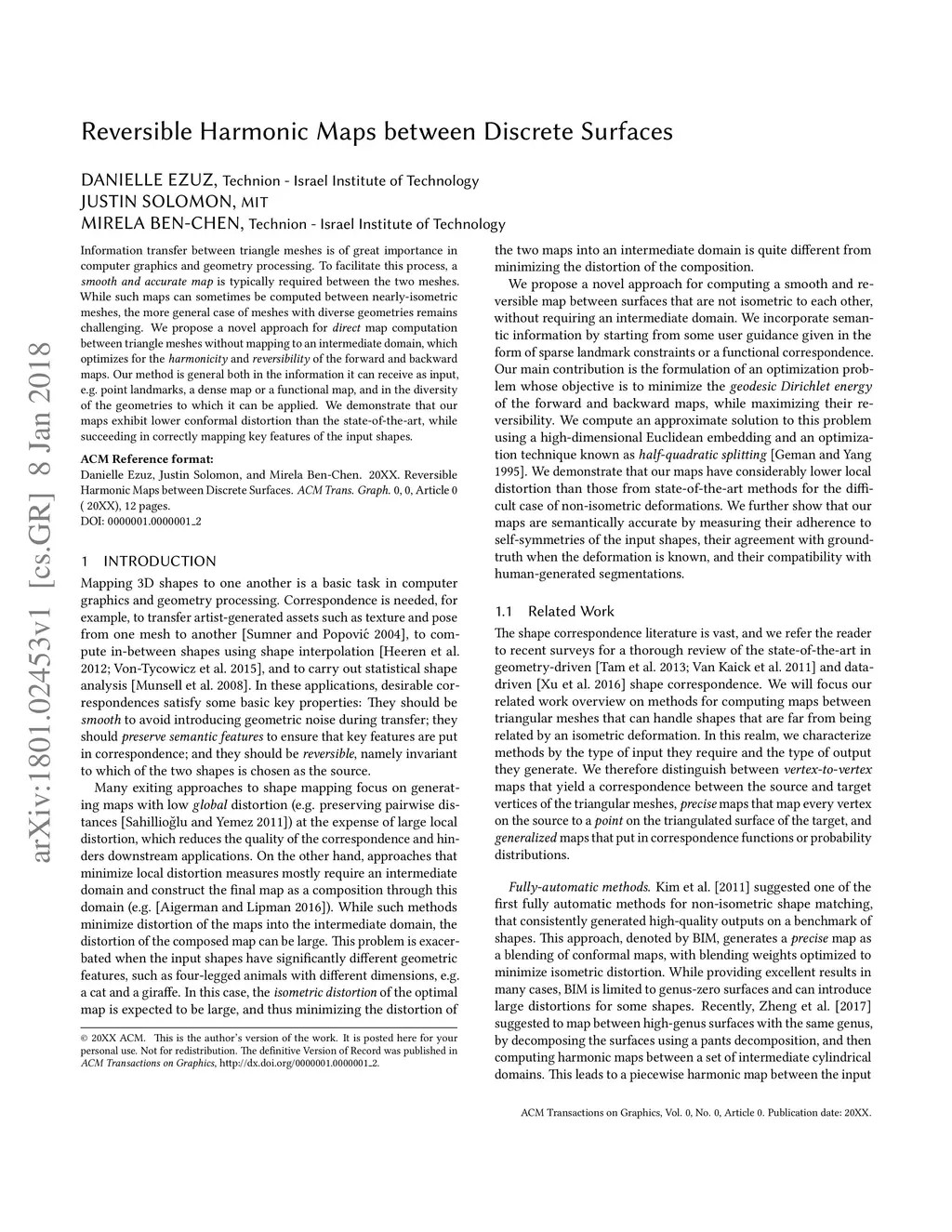 Information transfer between triangle meshes is of great importance in computer graphics and geometry processing. To facilitate this process, a smooth and accurate map is typically required between the two meshes. While such maps can sometimes be computed between nearly-isometric meshes, the more general case of meshes with diverse geometries remains challenging. We propose a novel approach for direct map computation between triangle meshes without mapping to an intermediate domain, which optimizes for the harmonicity and reversibility of the forward and backward maps. Our method is general both in the information it can receive as input, e.g. point landmarks, a dense map or a functional map, and in the diversity of the geometries to which it can be applied. We demonstrate that our maps exhibit lower conformal distortion than the state-of-the-art, while succeeding in correctly mapping key features of the input shapes.