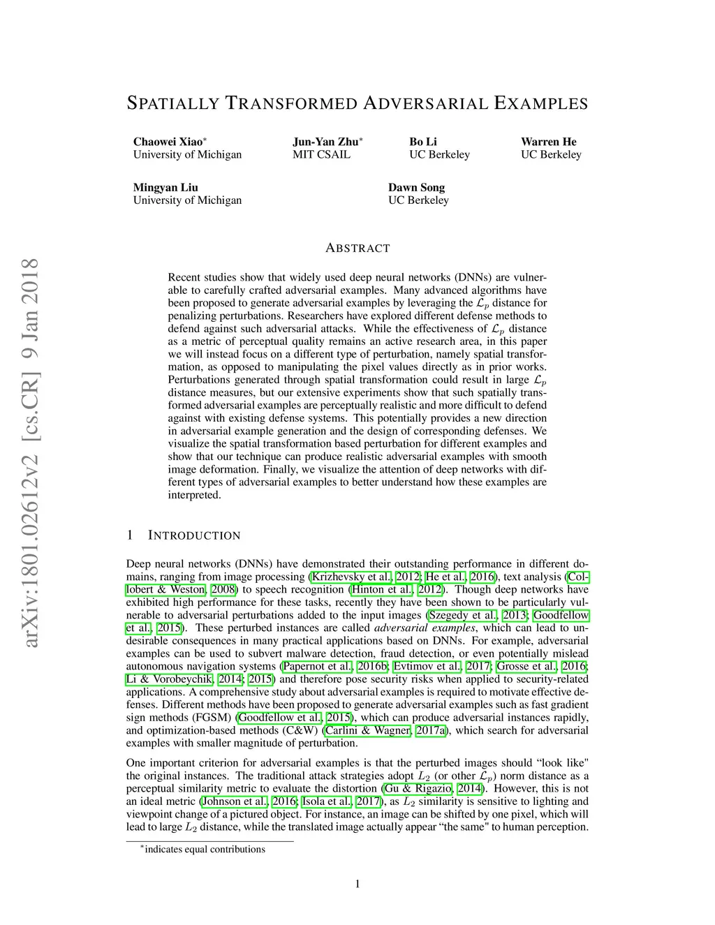 Spatially Transformed Adversarial Examples