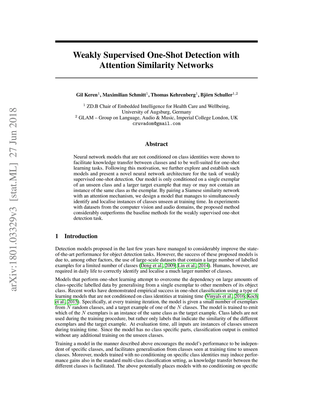 Weakly Supervised One-Shot Detection with Attention Similarity Networks