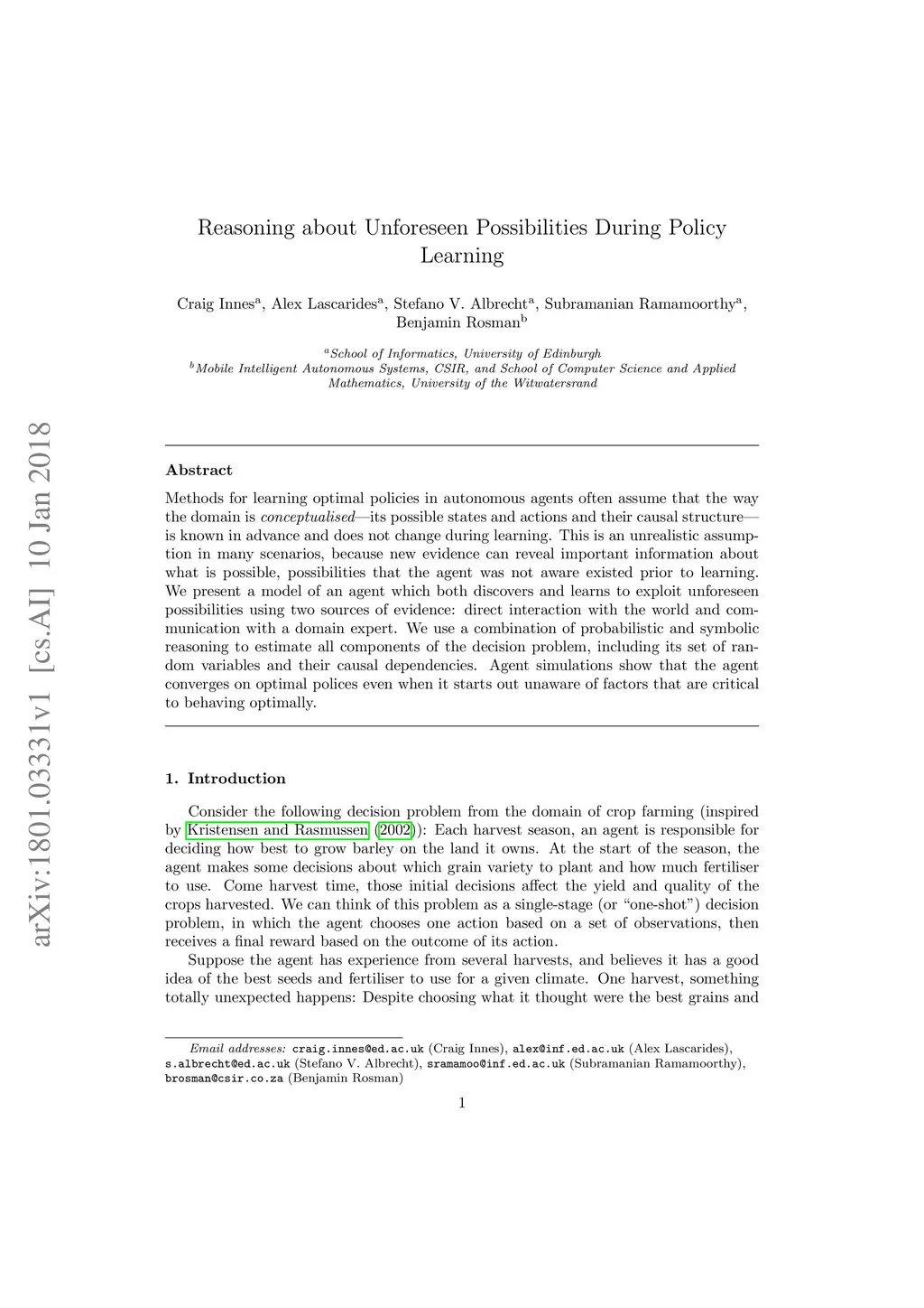 Reasoning about Unforeseen Possibilities During Policy Learning