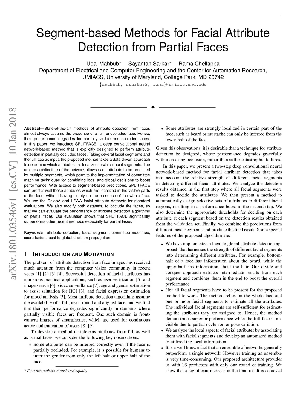 State-of-the-art methods of attribute detection from faces almost always assume the presence of a full, unoccluded face. Hence, their performance degrades for partially visible and occluded faces. In this paper, we introduce SPLITFACE, a deep convolutional neural network-based method that is explicitly designed to perform attribute detection in partially occluded faces. Taking several facial segments and the full face as input, the proposed method takes a data driven approach to determine which attributes are localized in which facial segments. The unique architecture of the network allows each attribute to be predicted by multiple segments, which permits the implementation of committee machine techniques for combining local and global decisions to boost performance. With access to segment-based predictions, SPLITFACE can predict well those attributes which are localized in the visible parts of the face, without having to rely on the presence of the whole face. We use the CelebA and LFWA facial attribute datasets for standard evaluations. We also modify both datasets, to occlude the faces, so that we can evaluate the performance of attribute detection algorithms on partial faces. Our evaluation shows that SPLITFACE significantly outperforms other recent methods especially for partial faces.
