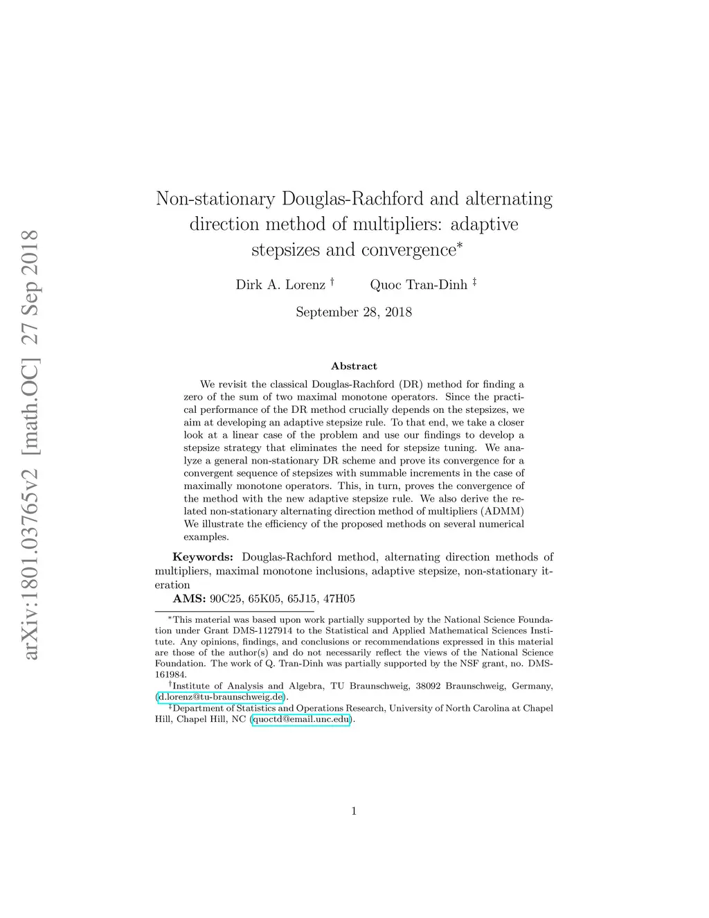 We revisit the classical Douglas-Rachford (DR) method for finding a zero of the sum of two maximal monotone operators. Since the practical performance of the DR method crucially depends on the stepsizes, we aim at developing an adaptive stepsize rule. To that end, we take a closer look at a linear case of the problem and use our findings to develop a stepsize strategy that eliminates the need for stepsize tuning. We analyze a general non-stationary DR scheme and prove its convergence for a convergent sequence of stepsizes with summable increments. This, in turn, proves the convergence of the method with the new adaptive stepsize rule. We also derive the related non-stationary alternating direction method of multipliers (ADMM) from such a non-stationary DR method. We illustrate the efficiency of the proposed methods on several numerical examples.