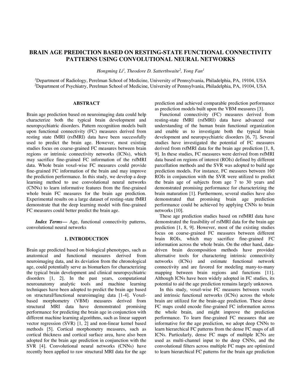 Brain Age Prediction Based on Resting-State Functional Connectivity