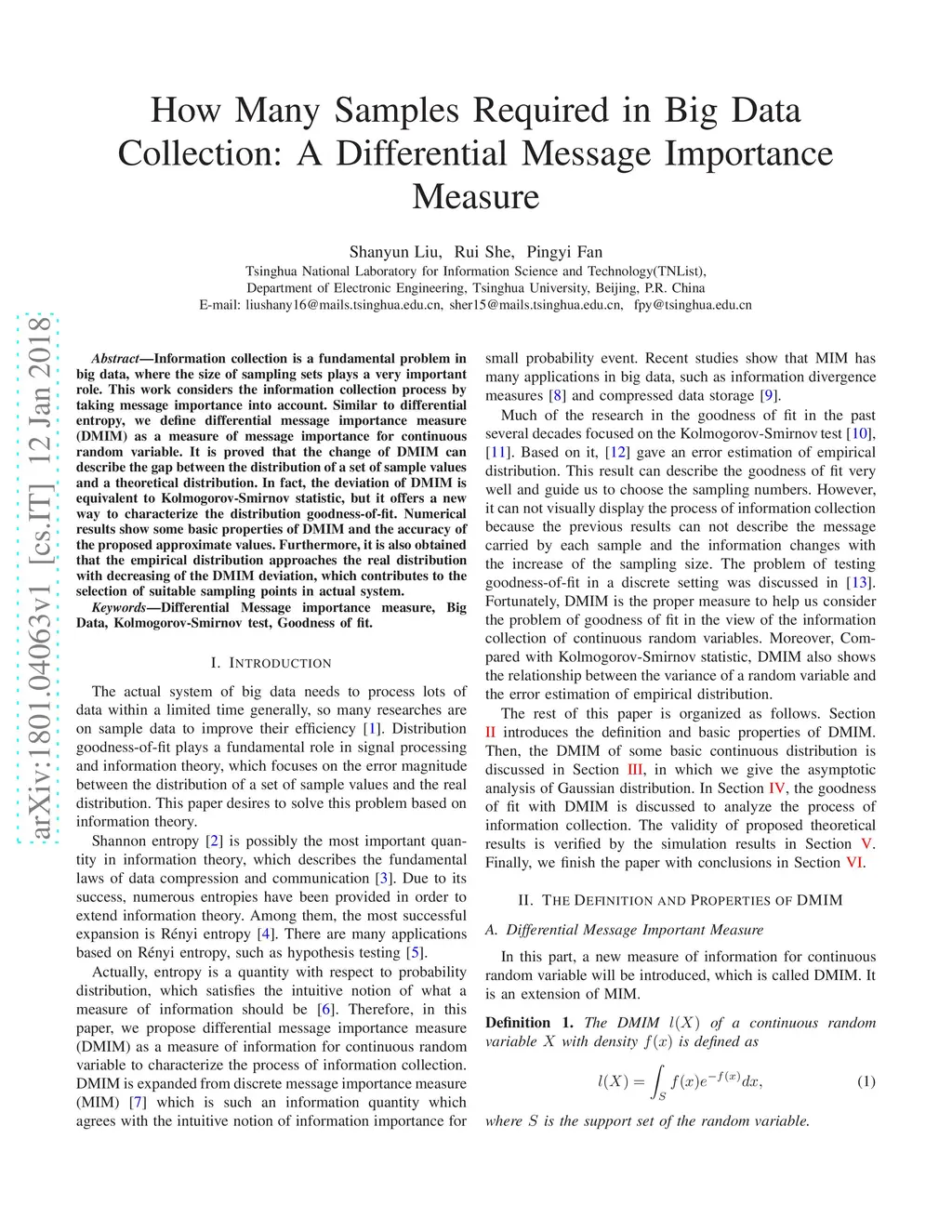 Information collection is a fundamental problem in big data, where the size of sampling sets plays a very important role. This work considers the information collection process by taking message importance into account. Similar to differential entropy, we define differential message importance measure (DMIM) as a measure of message importance for continuous random variable. It is proved that the change of DMIM can describe the gap between the distribution of a set of sample values and a theoretical distribution. In fact, the deviation of DMIM is equivalent to Kolmogorov-Smirnov statistic, but it offers a new way to characterize the distribution goodness-of-fit. Numerical results show some basic properties of DMIM and the accuracy of the proposed approximate values. Furthermore, it is also obtained that the empirical distribution approaches the real distribution with decreasing of the DMIM deviation, which contributes to the selection of suitable sampling points in actual system.