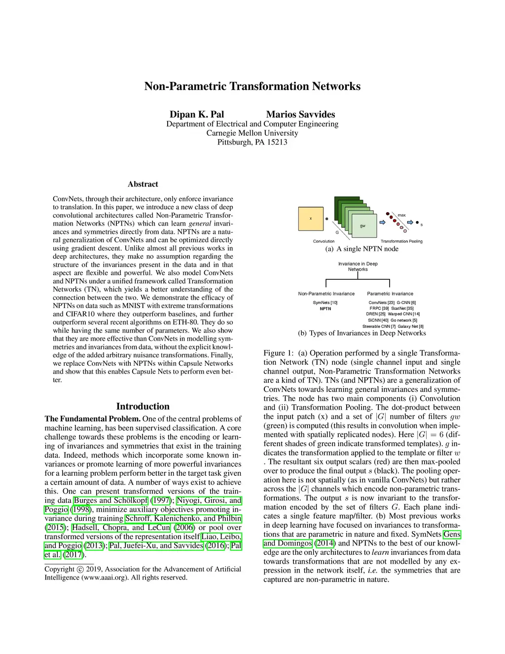 ConvNets, through their architecture, only enforce invariance to translation. In this paper, we introduce a new class of deep convolutional architectures called Non-Parametric Transformation Networks (NPTNs) which can learn \textit{general} invariances and symmetries directly from data. NPTNs are a natural generalization of ConvNets and can be optimized directly using gradient descent. Unlike almost all previous works in deep architectures, they make no assumption regarding the structure of the invariances present in the data and in that aspect are flexible and powerful. We also model ConvNets and NPTNs under a unified framework called Transformation Networks (TN), which yields a better understanding of the connection between the two. We demonstrate the efficacy of NPTNs on data such as MNIST with extreme transformations and CIFAR10 where they outperform baselines, and further outperform several recent algorithms on ETH-80. They do so while having the same number of parameters. We also show that they are more effective than ConvNets in modelling symmetries and invariances from data, without the explicit knowledge of the added arbitrary nuisance transformations. Finally, we replace ConvNets with NPTNs within Capsule Networks and show that this enables Capsule Nets to perform even better.