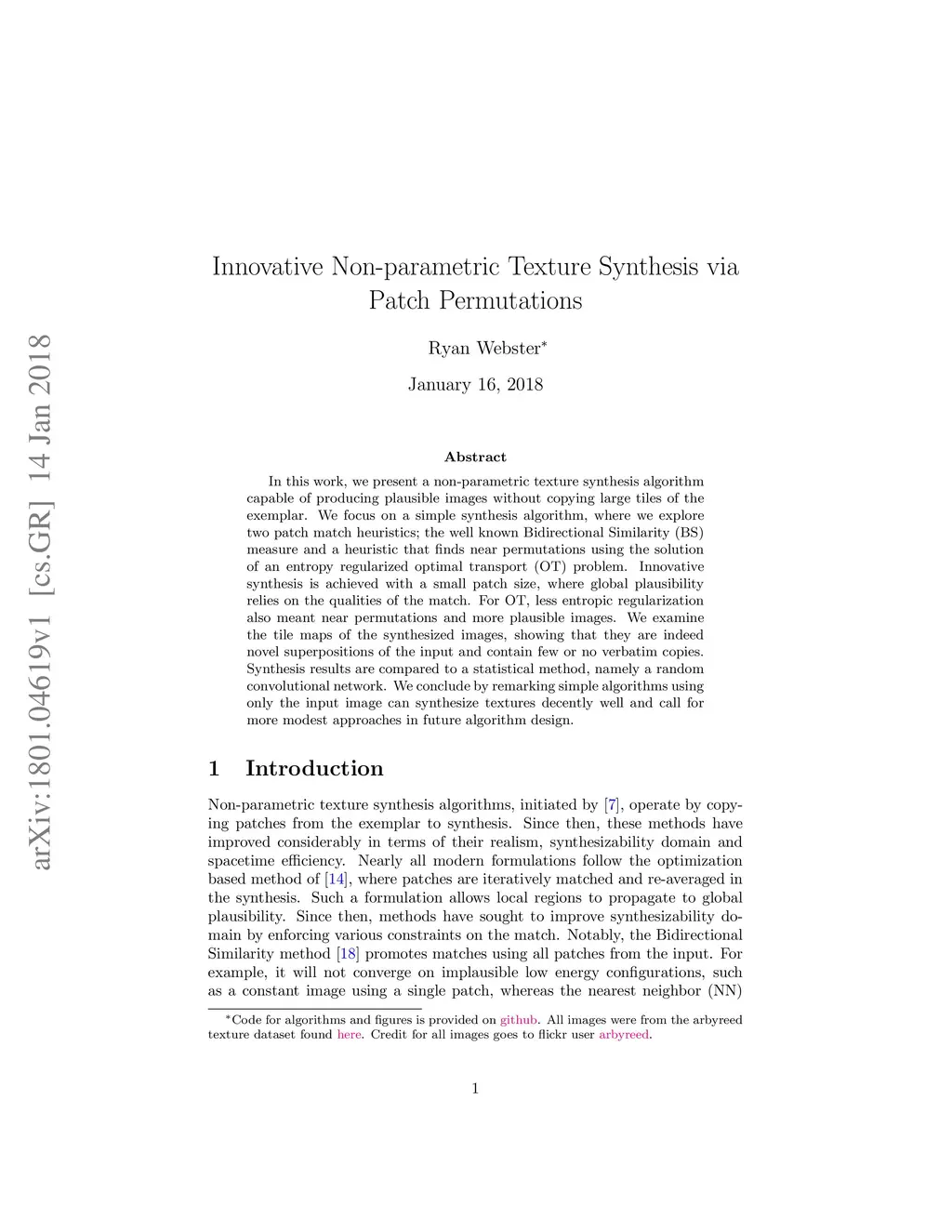 In this work, we present a non-parametric texture synthesis algorithm capable of producing plausible images without copying large tiles of the exemplar. We focus on a simple synthesis algorithm, where we explore two patch match heuristics; the well known Bidirectional Similarity (BS) measure and a heuristic that finds near permutations using the solution of an entropy regularized optimal transport (OT) problem. Innovative synthesis is achieved with a small patch size, where global plausibility relies on the qualities of the match. For OT, less entropic regularization also meant near permutations and more plausible images. We examine the tile maps of the synthesized images, showing that they are indeed novel superpositions of the input and contain few or no verbatim copies. Synthesis results are compared to a statistical method, namely a random convolutional network. We conclude by remarking simple algorithms using only the input image can synthesize textures decently well and call for more modest approaches in future algorithm design.