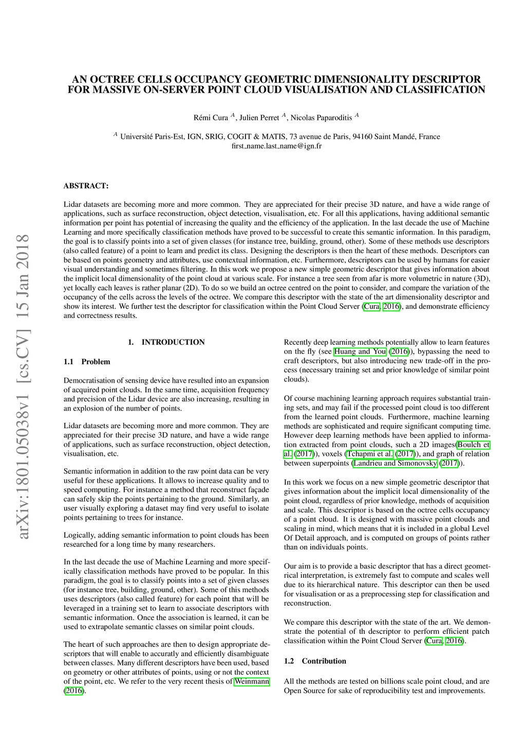 An octree cells occupancy geometric dimensionality descriptor for