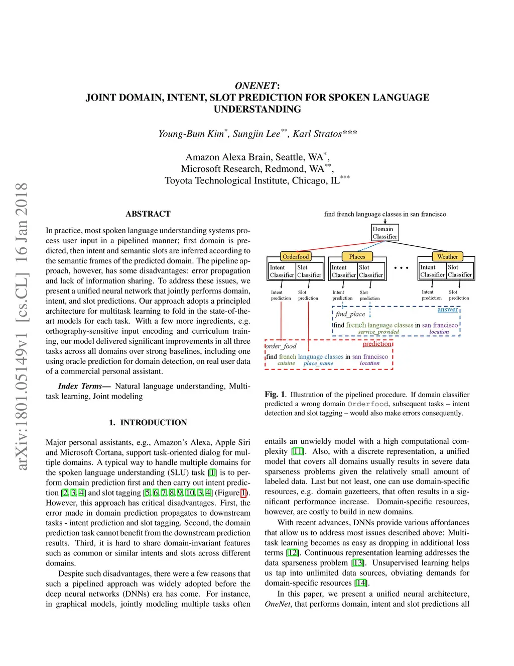 OneNet: Joint Domain, Intent, Slot Prediction for Spoken Language