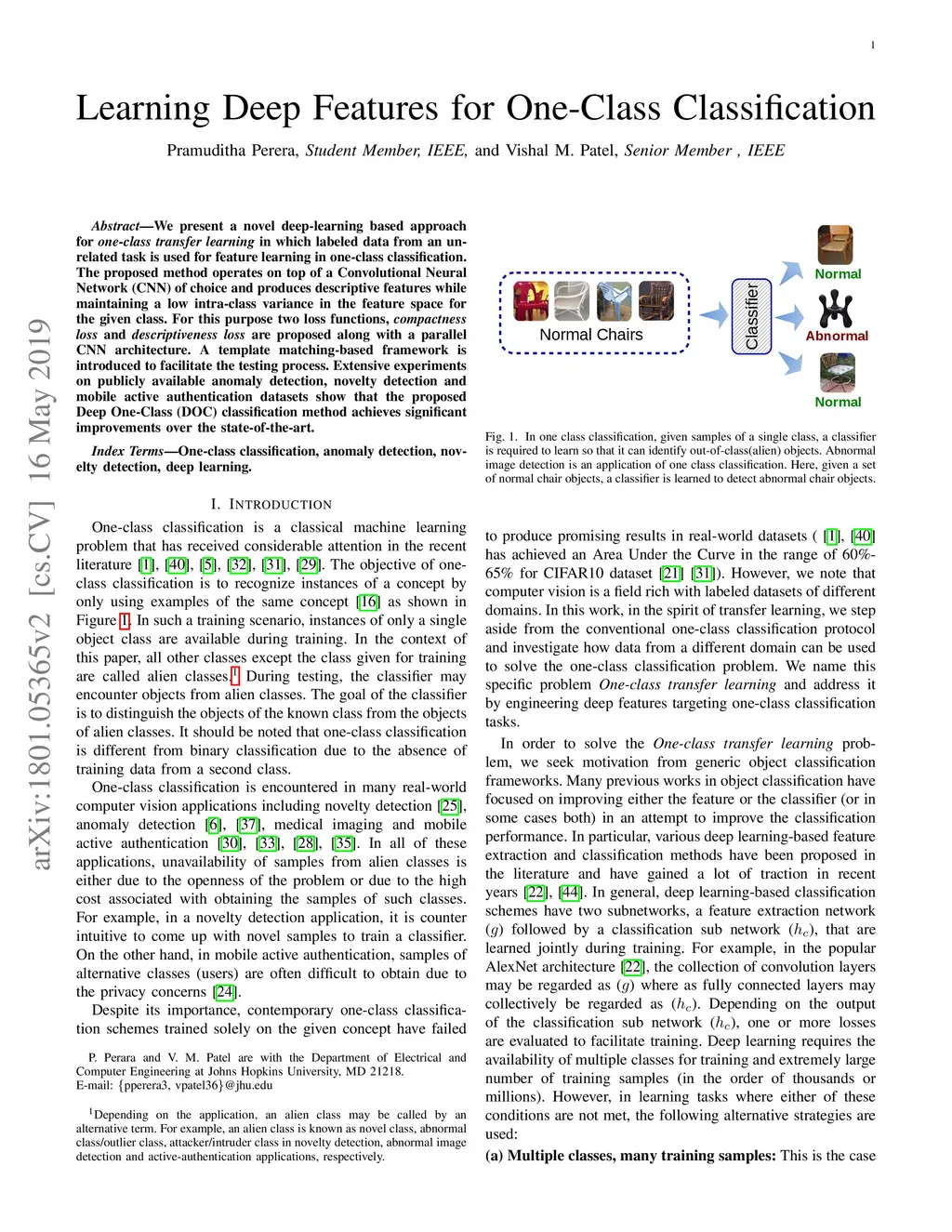 Learning Deep Features for One-Class Classification