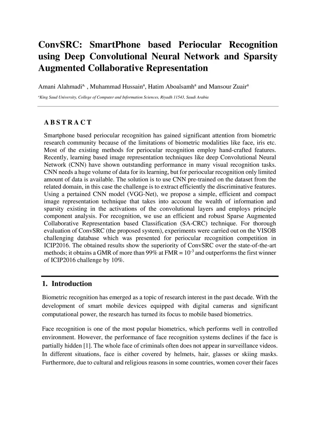 ConvSRC: SmartPhone based Periocular Recognition using Deep
