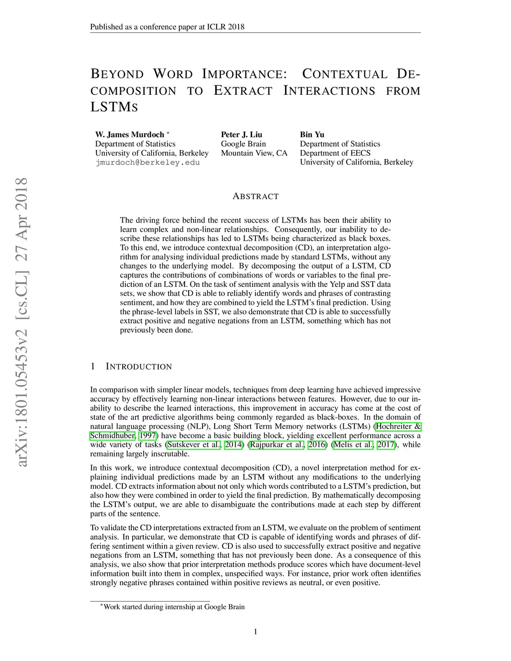 Beyond Word Importance: Contextual Decomposition to Extract Interactions from LSTMs